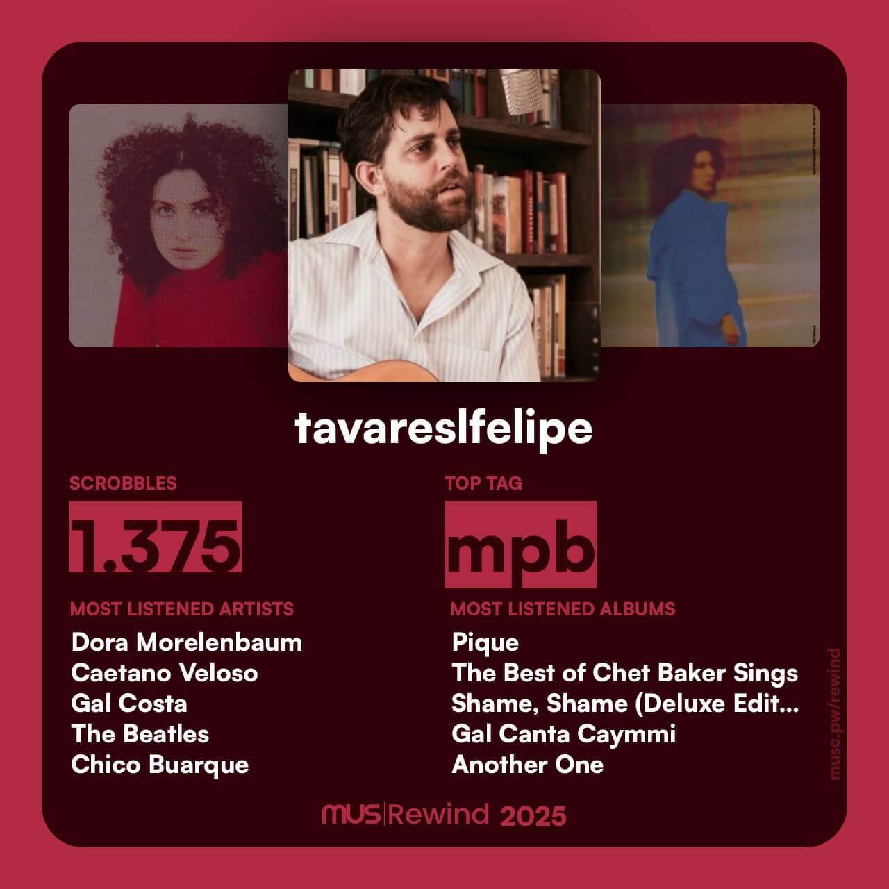 Estatísticas geradas pelo rewind.musicorumapp.com a partir de dados do Last.fm