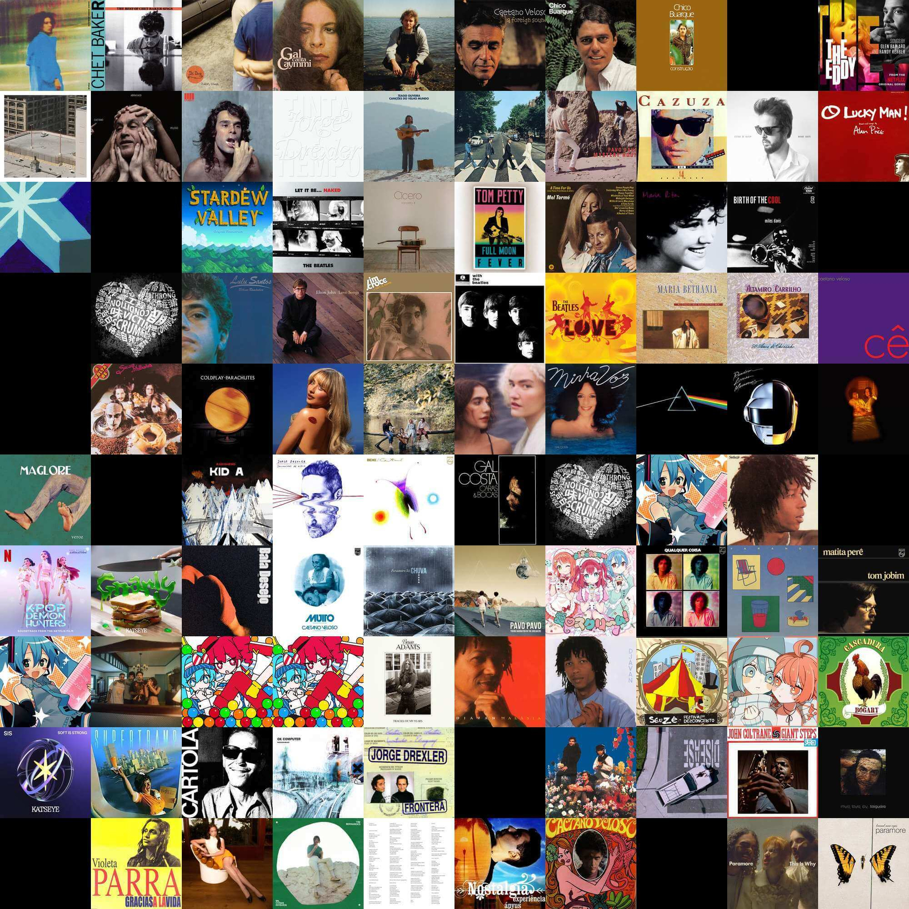 Colagem com a capa dos 100 discos mais ouvidos em 2025
